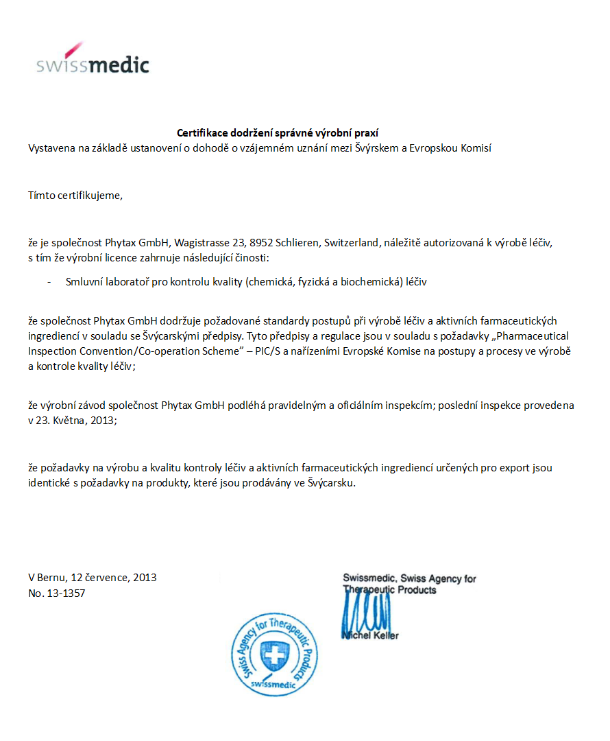 Patentní medicína » Akreditovaná laboratoř pro léčiva Phytax ve švýcarském Schlierenu